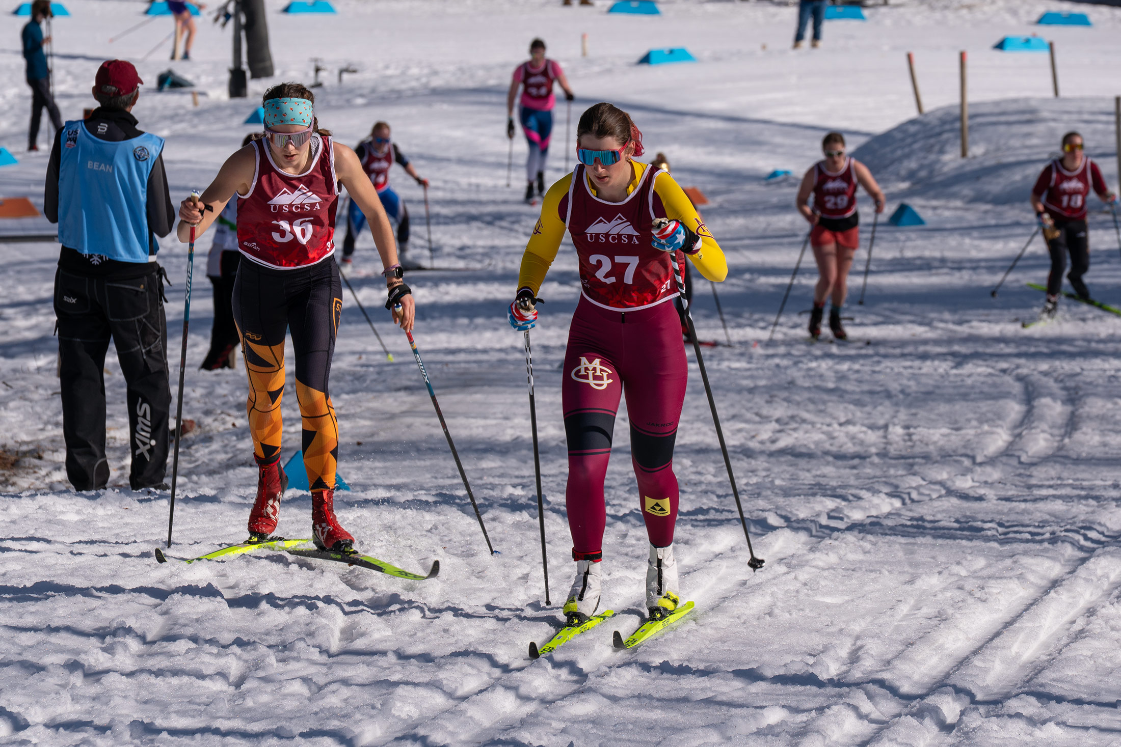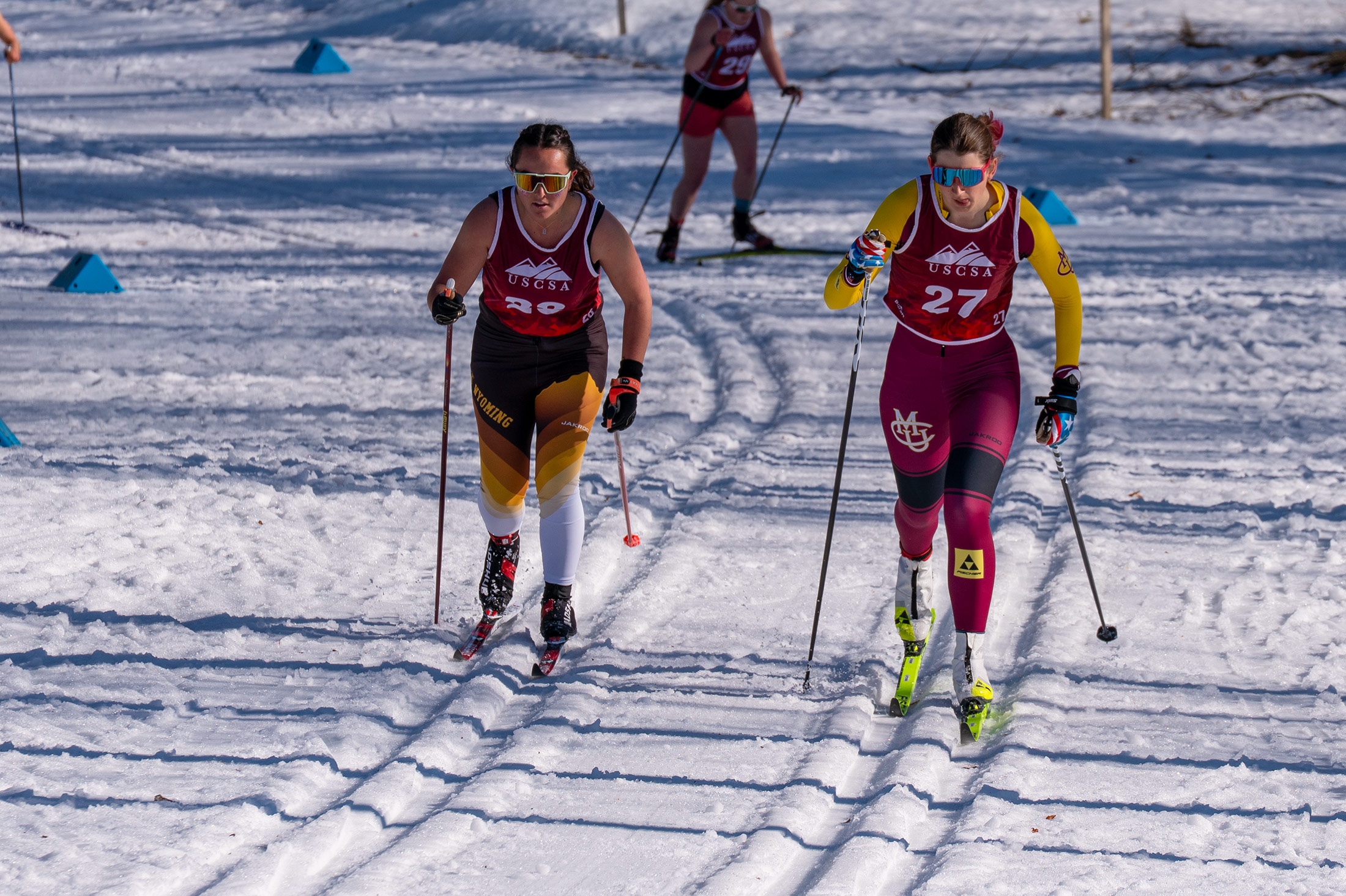 Racing in challenging, spring-like conditions with temperatures pushing 50°F, Bochenek executed a composed and powerful race, winning in 23:11.1 and breaking the field beyond a tight battle at the very top. Behind her, a deep and competitive field showcased the strength of collegiate skiing, with athletes from St. Olaf, Paul Smith’s, Wyoming, and Western Colorado all in contention.
