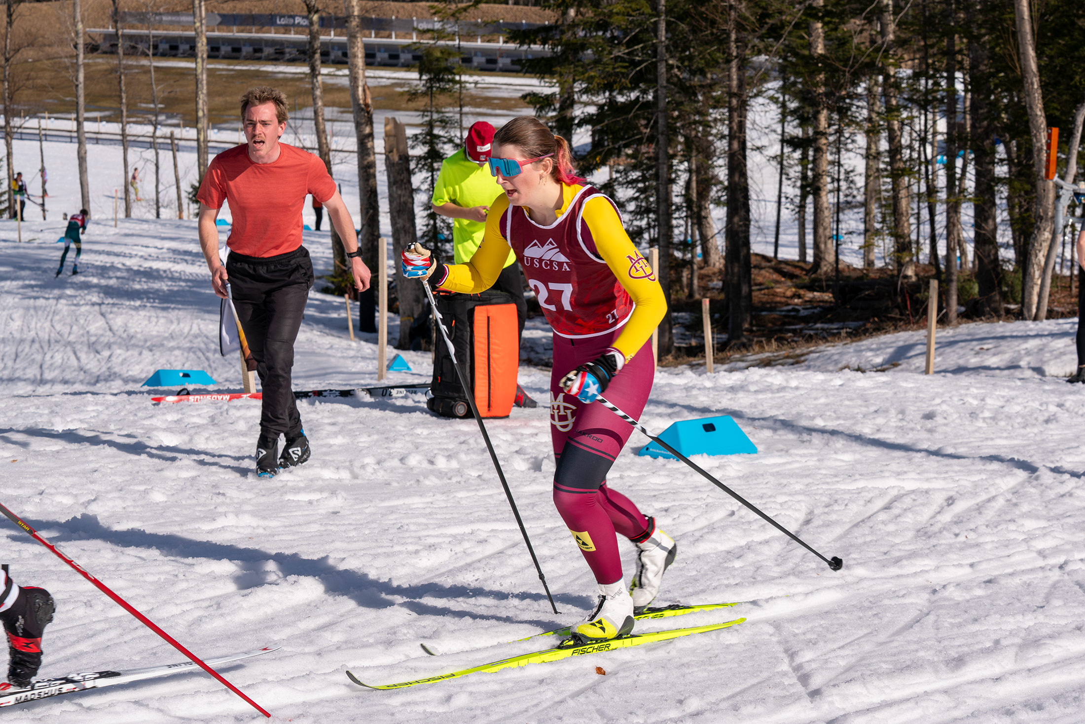 Greta Bochenek launches off the start line at Mt. Van Hoevenberg, setting the tone early in the 7.5K classic on her way to a national title at the USCSA Championships.