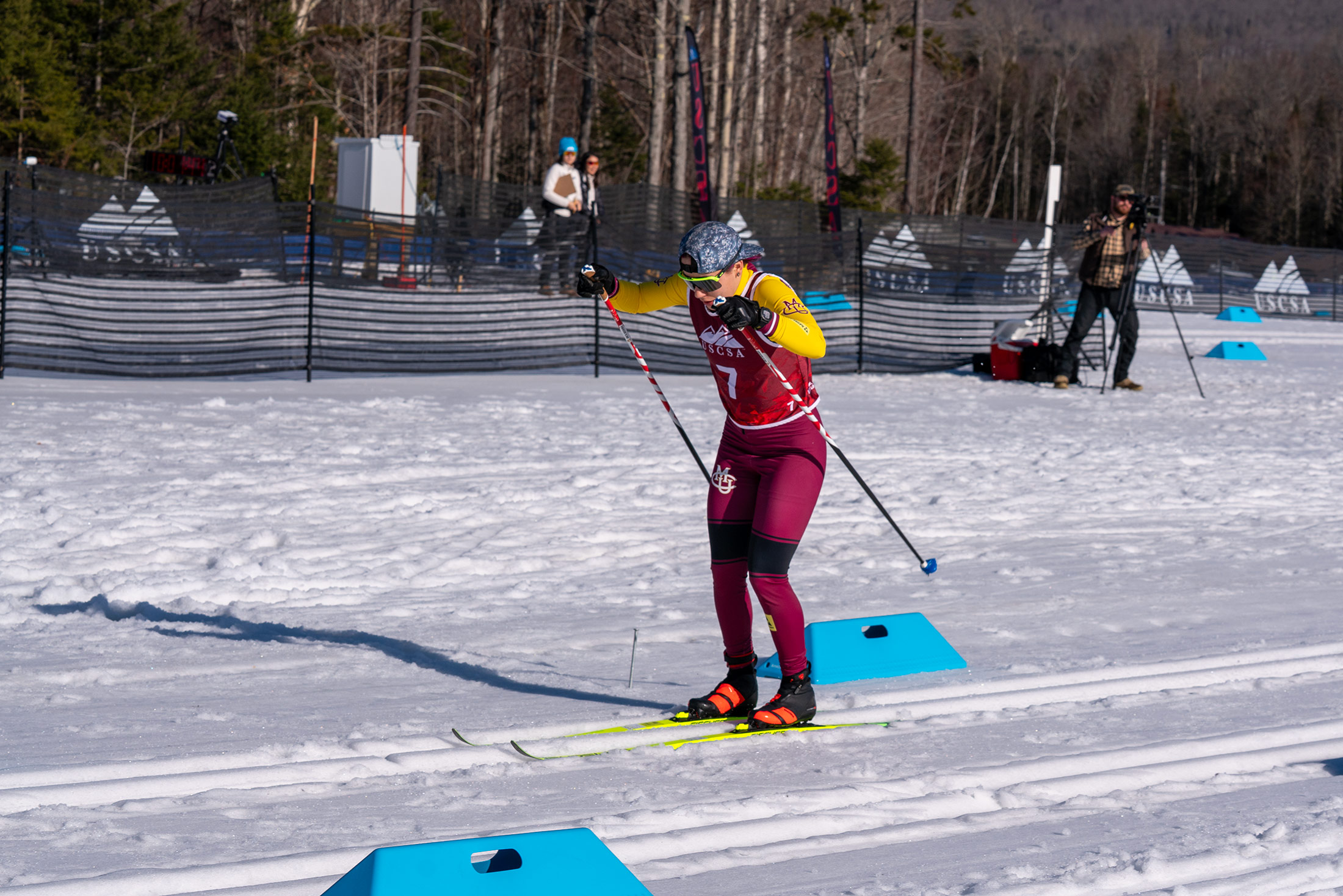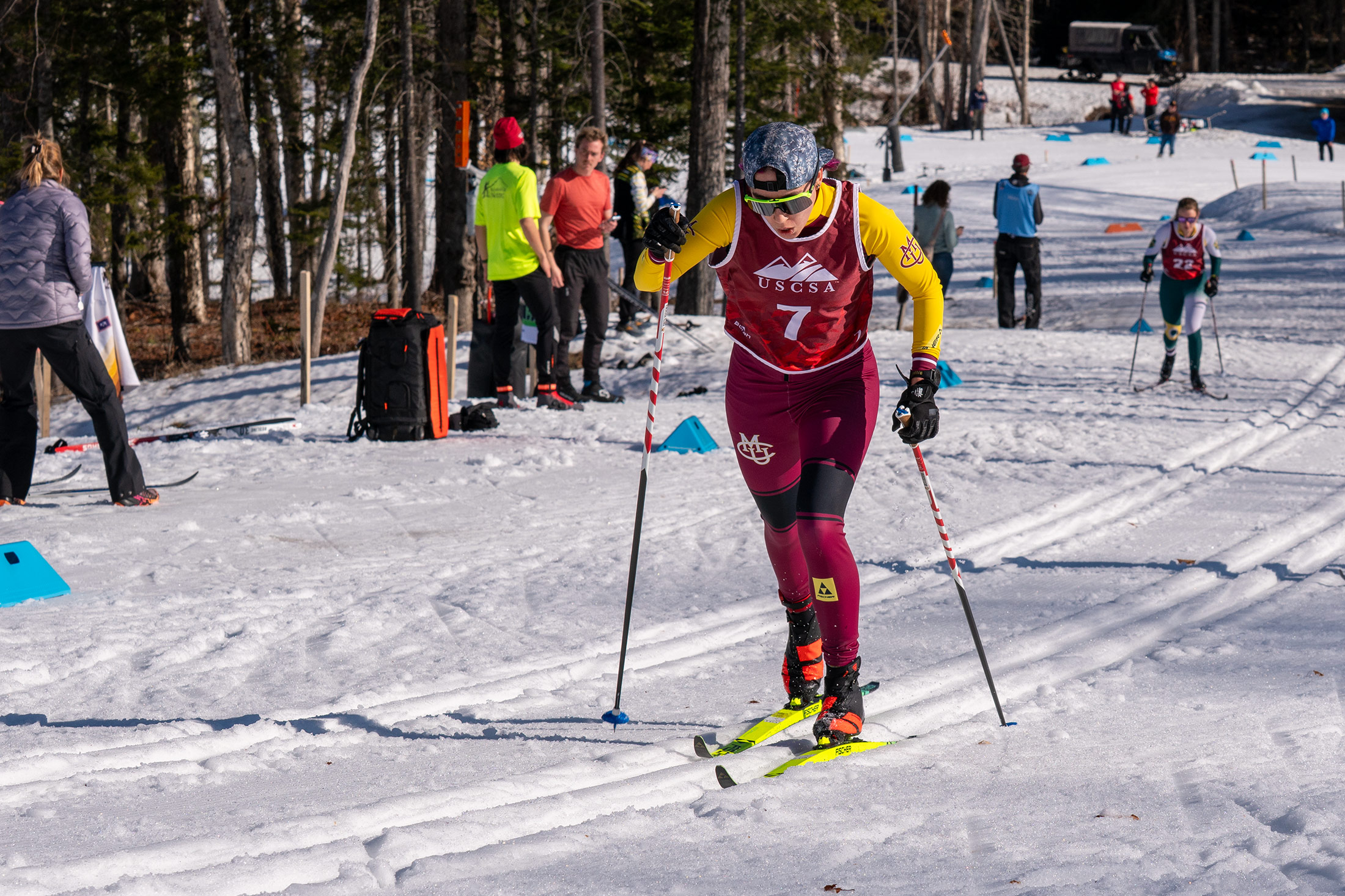 Greta Bochenek launches off the start line at Mt. Van Hoevenberg, setting the tone early in the 7.5K classic on her way to a national title at the USCSA Championships.