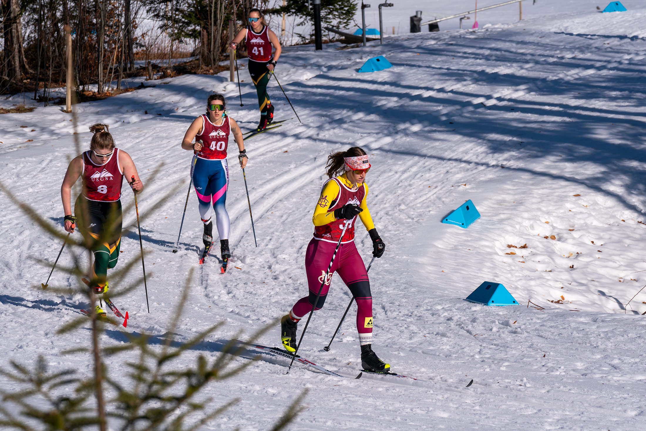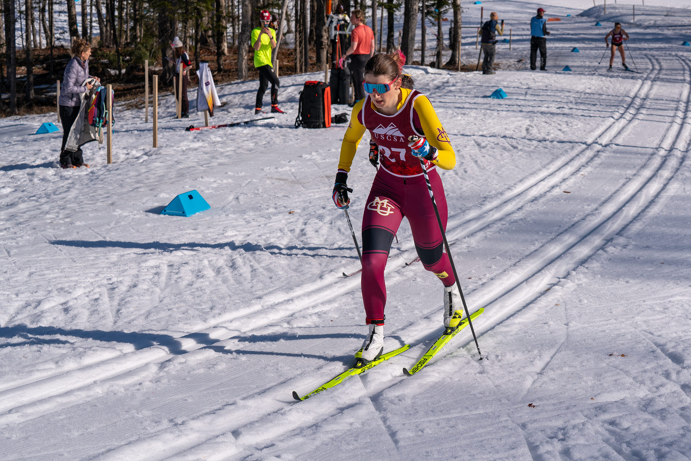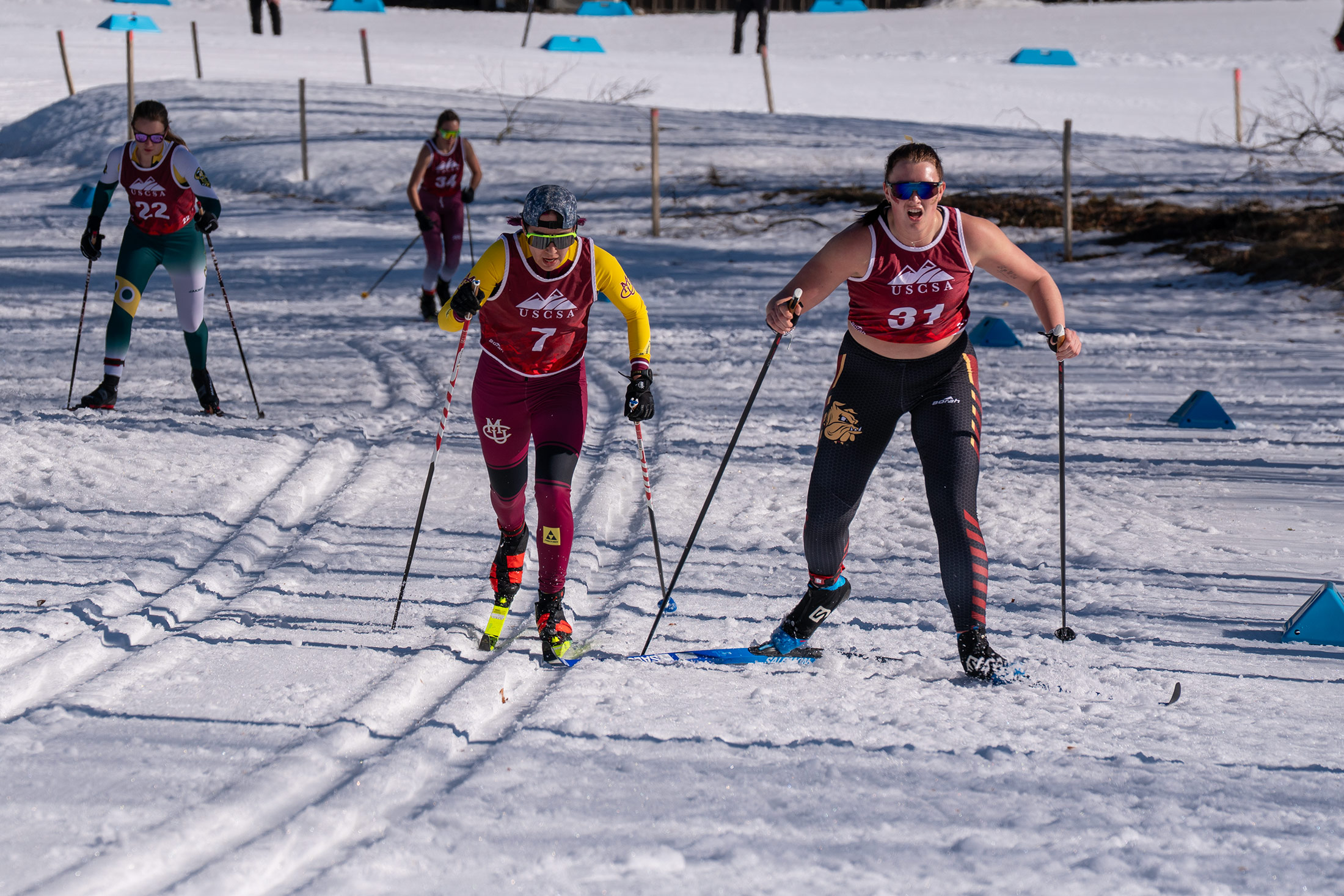 Racing in challenging, spring-like conditions with temperatures pushing 50°F, Bochenek executed a composed and powerful race, winning in 23:11.1 and breaking the field beyond a tight battle at the very top. Behind her, a deep and competitive field showcased the strength of collegiate skiing, with athletes from St. Olaf, Paul Smith’s, Wyoming, and Western Colorado all in contention.